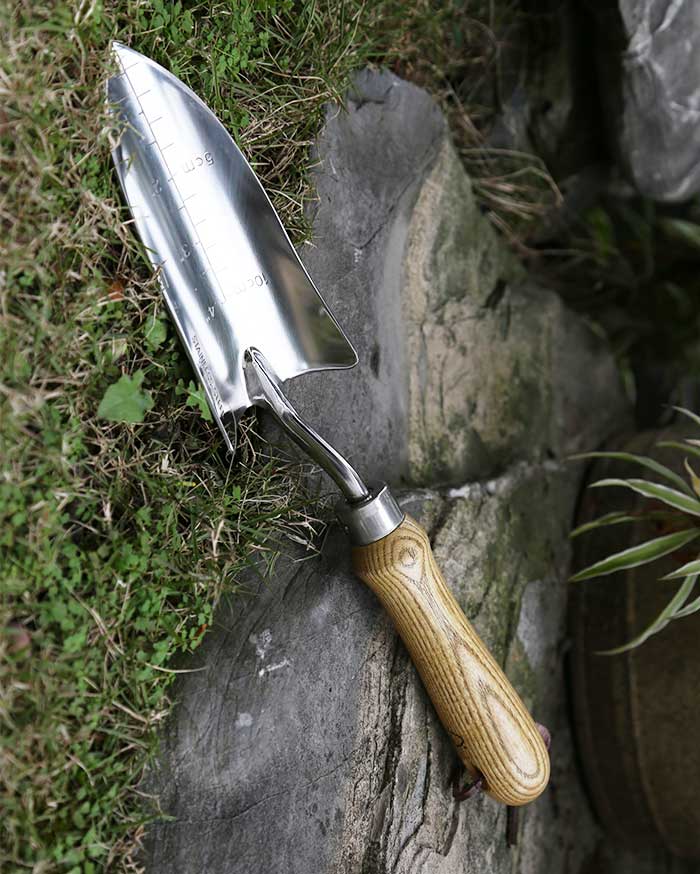 13-1/4‘不銹鋼手鏟 不銹鋼鏡面拋光葉片 測(cè)量刻度葉片 皮帶灰木柄 包裝:PE袋 |