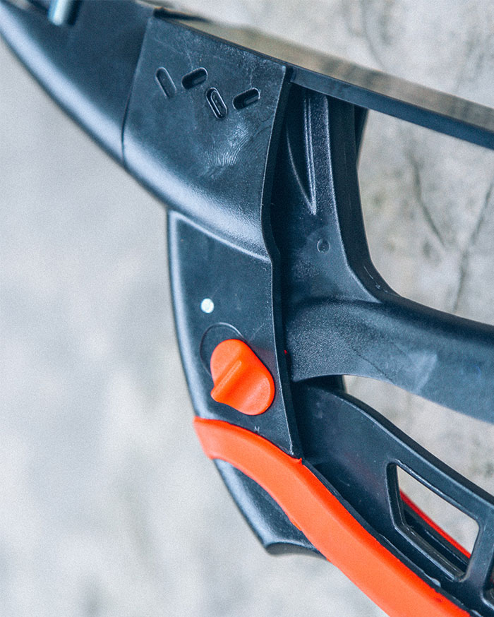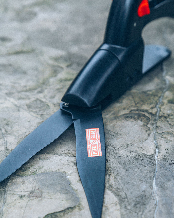 13-1/2‘草剪 不粘聚四氟乙烯涂層刀片 帶TPR防滑手柄的塑料手柄 塑料安全鎖 360°旋轉(zhuǎn)葉片8切割位置 包裝:滑動(dòng)卡 |